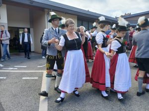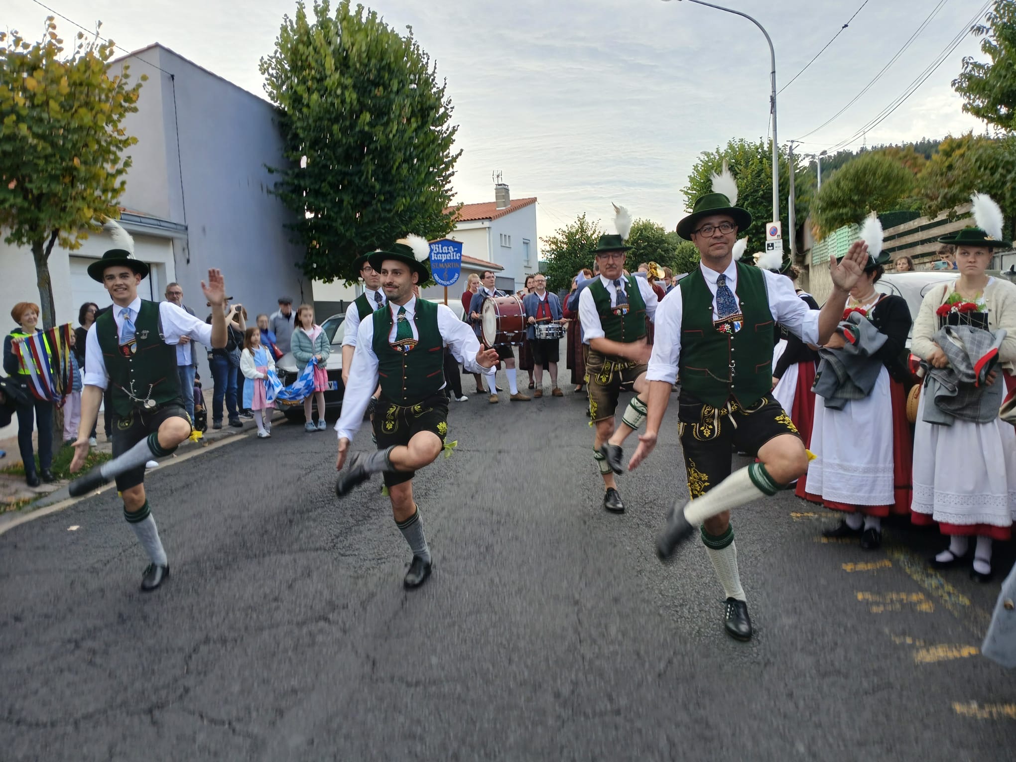 Die Marktgemeinde Beratzhausen pflegt seit 50 Jahren eine Städtepartnerschaft mit Ceyrat, im Département Puy-de-Dôme in der Region Auvergne-Rhône-Alpes. Ceyrat liegt südwestlich der Stadt Clermont-Ferrand im Regionalen Naturpark Volcans d’Auvergne im Zentralmassiv. Als Teil der 120-köpfigen Delegation waren 20 Aktive vom 1. bis 5.10. zu den Feierlichkeiten in der Partnergemeinde dabei. Am Donnerstag konnte nach einem gemeinsamen Frühstück bei einem Stadtrundgang die Geschichte der Heil- und Thermalquellen der Stadt Vichy erkundet werden. Der Nachmittag und Abend wurde in Gastfamilien und bei einem Traditionellen Abendessen verbracht. Am Freitag hatte man die Möglichkeit sich auf einem Biobauernhof über nachhaltige Landwirtschaft und einer Mehl- und Brotmanufaktur informieren. Nach einem gemeinsamen Mittagessen ging es auf das Plateau von Gergovia. Dort hat der Gallier Vercingetorix im Bello Gallico einen Sieg über Cäsar errungen. Der Legende nach ist das die Wiege von Asterix und Obelix. Neben dem Denkmal aus dem Jahr 1870 zeigten die Trachtler unter den Klängen der Blaskapelle St.Martin Oberpfaundorf ihr Können und begeisterten die deutschen und französischen Gäste. Am Abend genoss man gemeinsam ein Abendessen und ein klassisches französisches Kabarett. Am Samstag vormittag ging es in einem kleinen Umzug durch die Stadt Ceyrat, mit Tänzen auf verschiedenen Plätzen. Am Place de Liberté wurde gemeinsam die Sternpolka mit deutsch/französischen Paaren getanzt. Am Nachmittag wurden gemeinsam 50 Eichen und Bergahorn gepflanzt, als Zeichen der Verbundenheit der beiden Gemeinden und als Ausgleich der CO2 Emissionen der Austauschfahrt. Der Ausklang fand bei Tanz und einem Traditionellen Gericht „Aligot de L’Aubrac“ statt. Nach drei Tagen voller neuer Eindrücke und mit neue geknüpften Freundschaften ging es auf die Heimreise. Es waren Tage voller gelebter Partnerschaft und Europäischem Gedanken nach dem Motto „Freiheit, Gleichheit, Brüderlichkeit“. (Alexander Herold)
