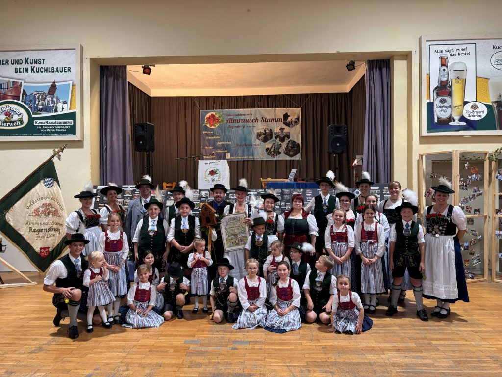 Wenn man auf das Vereinsleben zurückblickt, kann man sich das wie ein großes, feinmaschiges Sieb vorstellen. Ein Sieb, welches über die vergangenen 12 Jahrzehnte hinweg alles aufgenommen hat, was den Volkstrachtenverein „Almrausch Stamm“ e.V. ausmacht und das, was ihn geformt hat. Mit diesen Worten konnte 1. Vorständin Birgit Liebl am Samstag 25.10. die anwesenden 150 geladenen Gäste zum Ehrenabend in der festlich geschmückten Halle der SG Walhalla begrüßen. Gegründet wurde der Verein am 1. März 1905 in der Gaststätte „Zum goldenen Rad“ in Regensburg.