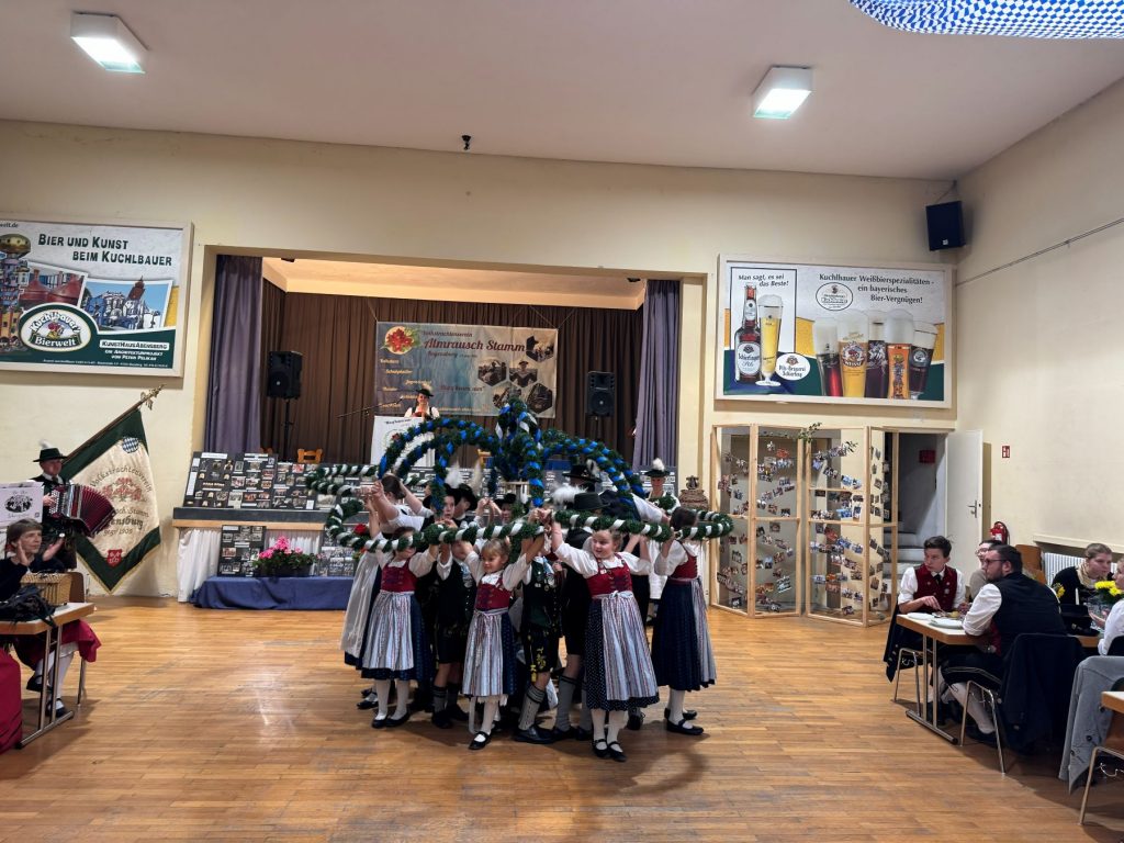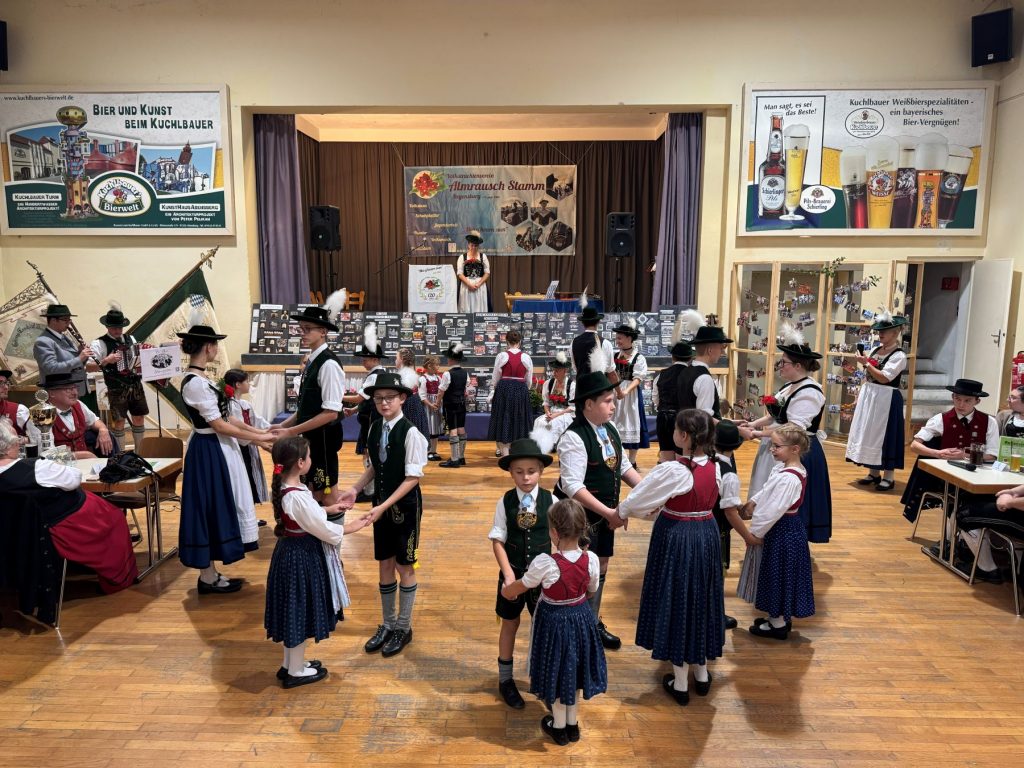Als noch ungeschliffener Edelstein konnte die Trachtenjugend mit 20 Paaren einen Volkstanz und später den Kronentanz aufführen. Diesen hatten sie 2024 als Gemeinschaftsprojekt „Wir setzen den Kleinen die Krone auf“ einstudiert und den 3. Preis im Wettbewerb „Jugend macht Heimat“ des Bayerischen Landesvereins für Heimatpflege e.V. erzielt.